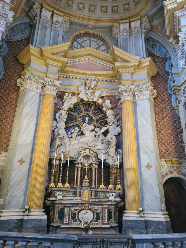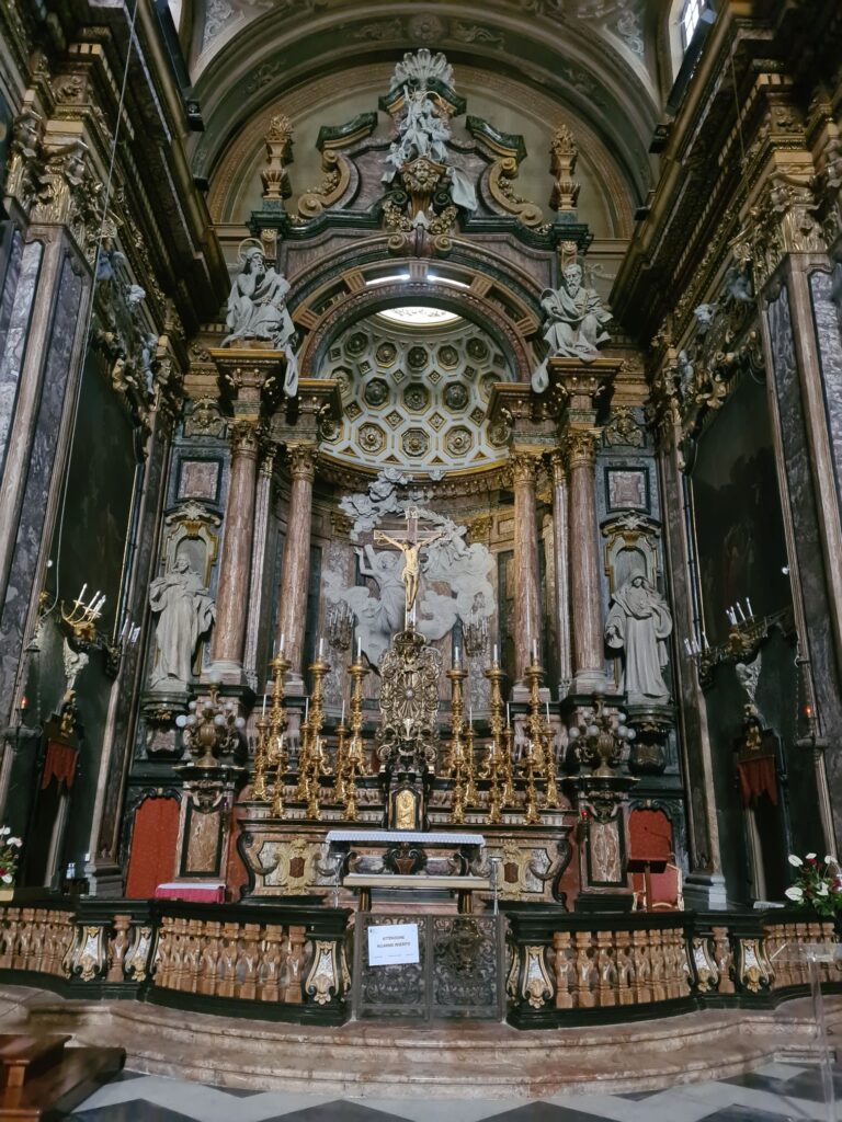 Et puis on est en Italie alors, bien sûr, des églises aussi, il y en a partout. Hier soir on les avait vues de l’extérieur lors d’une petite balade dans la ville.