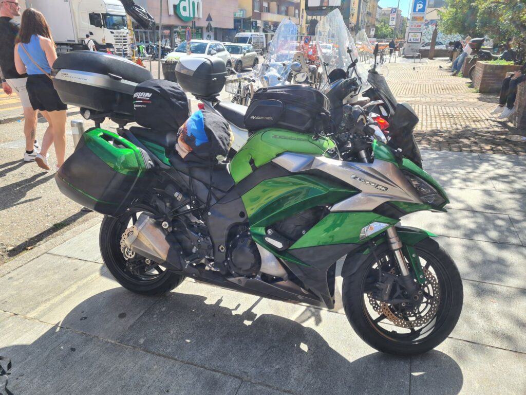 On s’engage dans la zone Zone à Traffic Limité (il semble que tout le monde s’en tape, il y a des deux roues partout). On pose la moto devant un établissement scolaire.