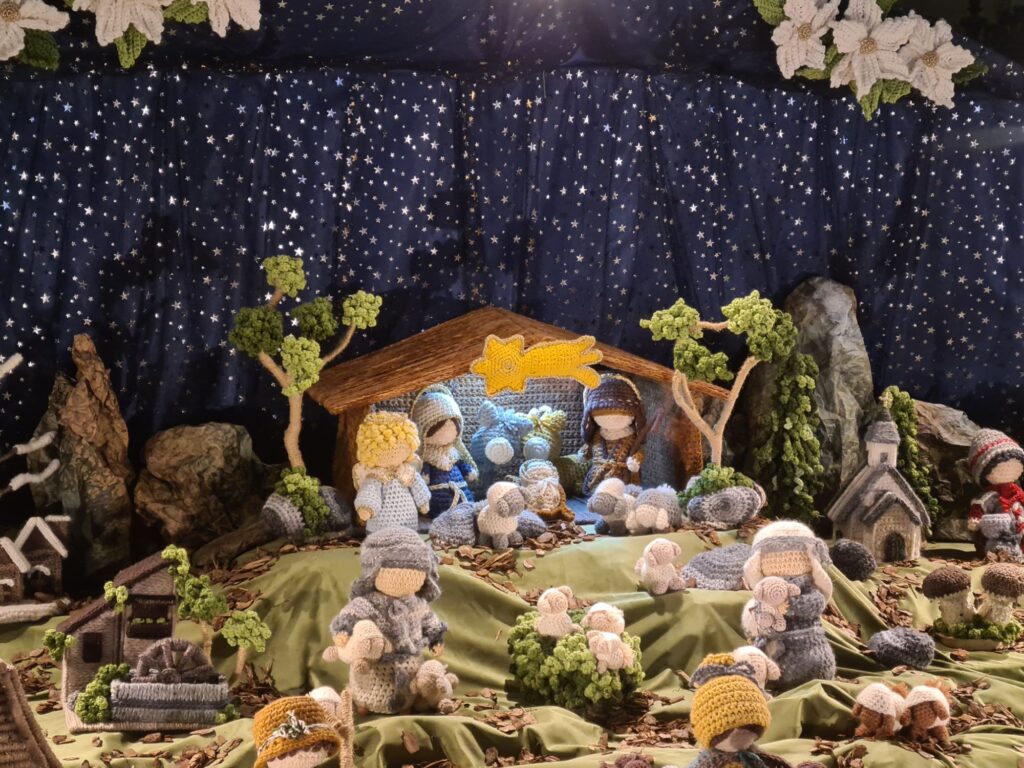On verra quand même, dans une église  une crèche en laine super originale 😁