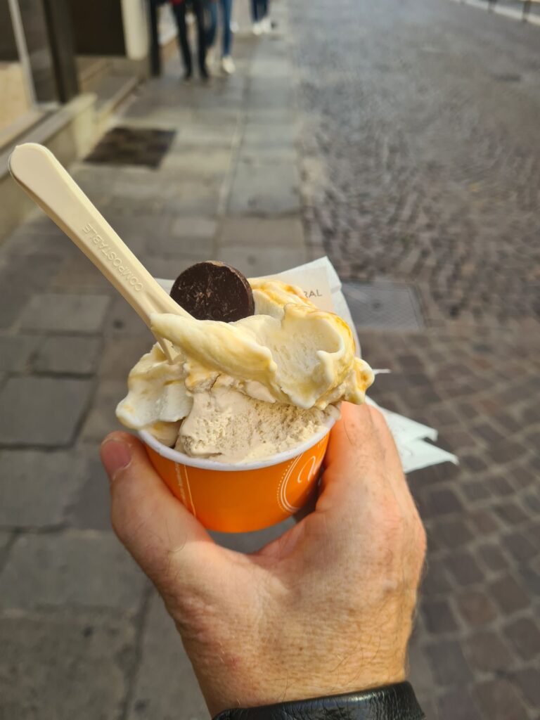 Une glace panna cotta/nocciola au goûter parce qu’on est en Italie.