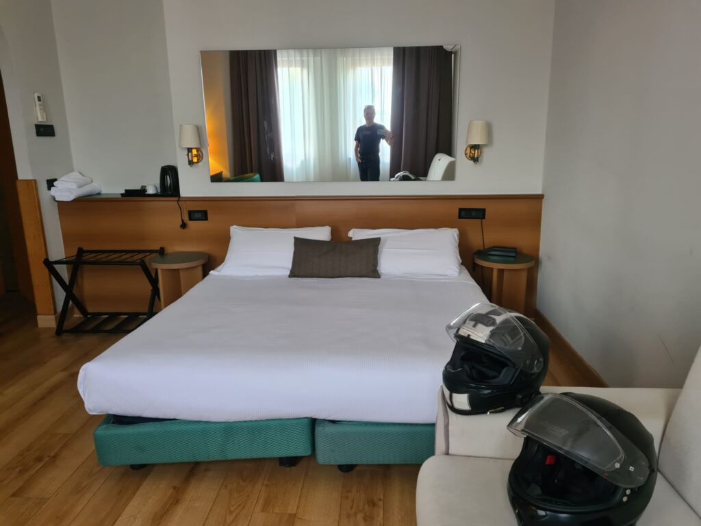On finit la route sous le soleil. Comme c’est mon anniversaire on se pose au Carlton, au centre de Trévise. Soyons fous 🤩