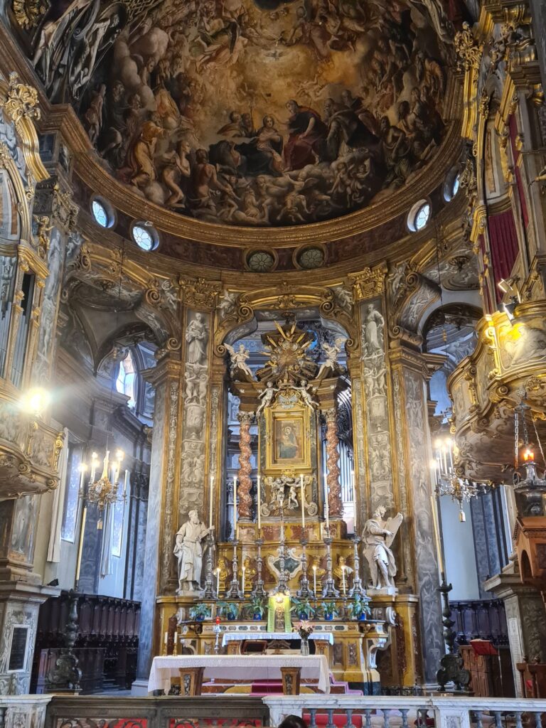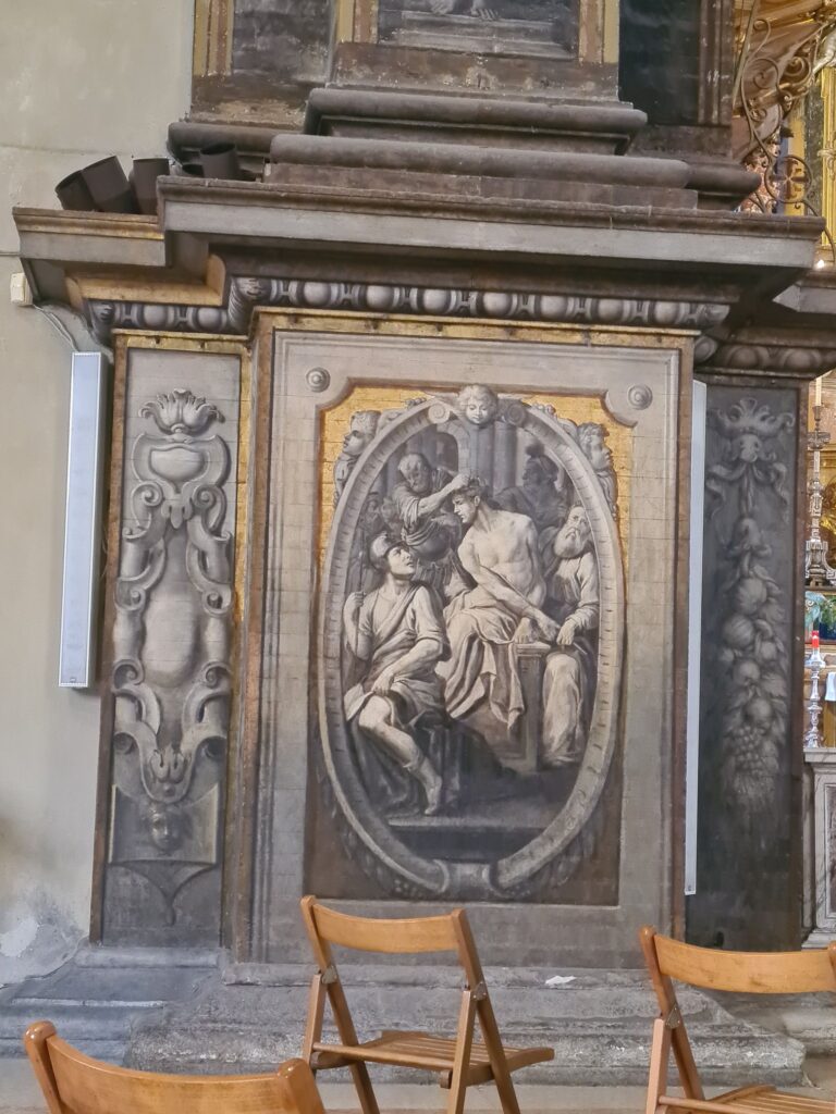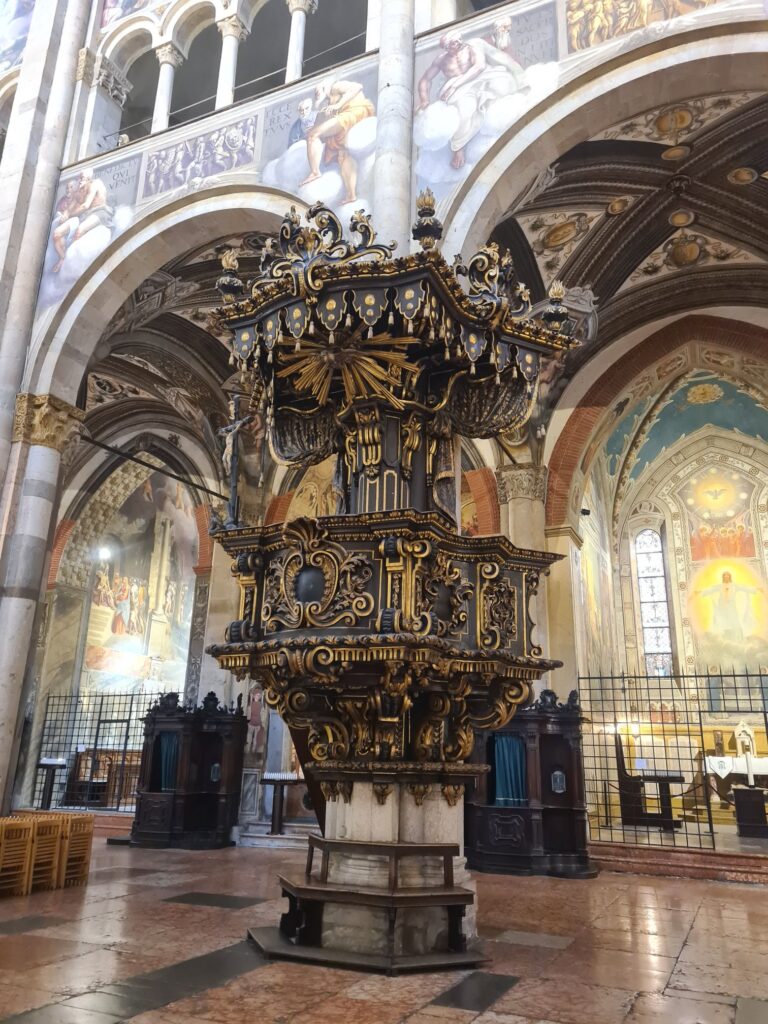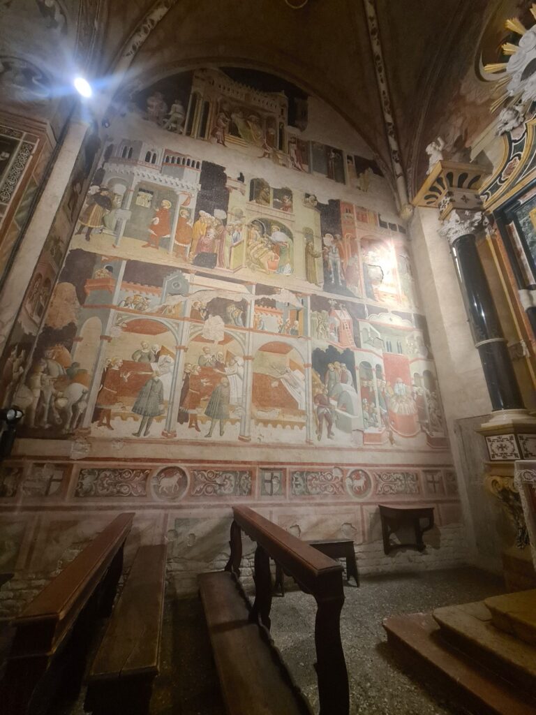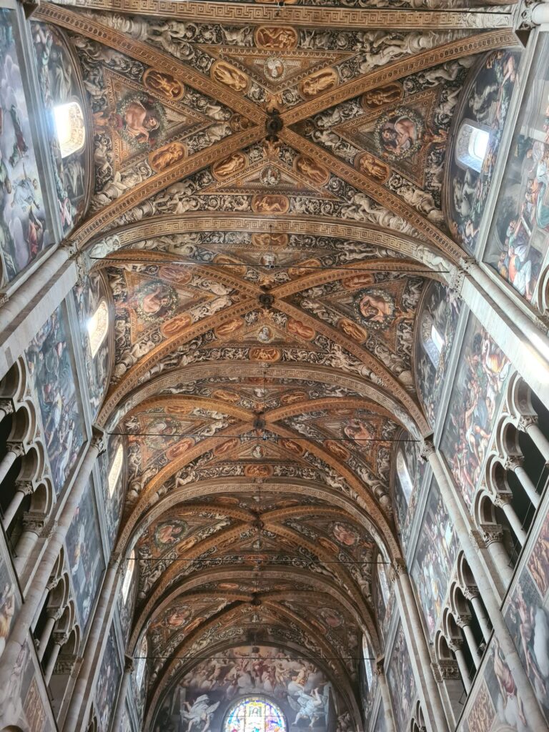 Et puis bien entendu, la tradition locale nous oblige à visiter le duomo. Encore quelques fresques extraordinaires, à la façon bande dessinée, un plafond absolument splendide.