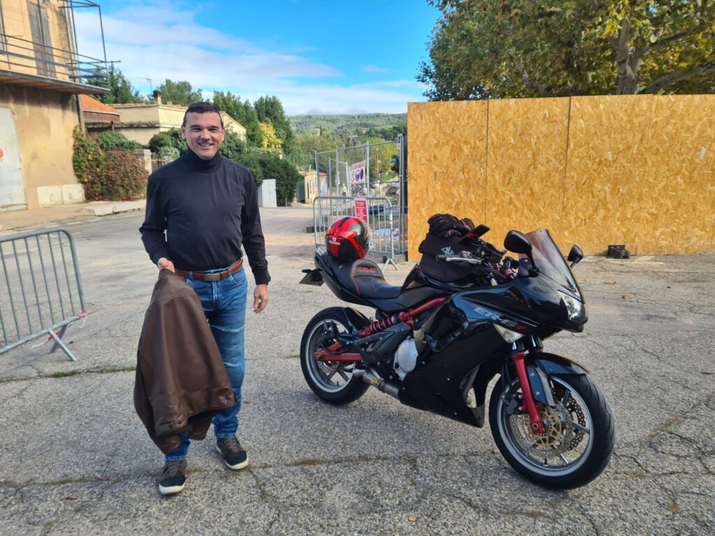 Et c’est parti pour une belle journée de moto avec une Kawette et mon Z1000sx. On part de Pourrières, on remonte à Rians (seconde dédicace à Hélène 😜) et puis direction Forcalquier. Un peu de brouillard, le soleil a du mal à sortir. La météo indique soleil mais la réalité est toute autre …