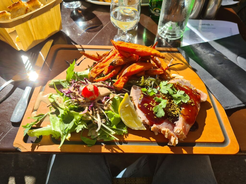 Je ne connaissais pas Forcalquier. On prend le temps de monter vers la citadelle et on se trouve un petit restaurant. Le soleil est levé et le temps restera au beau.