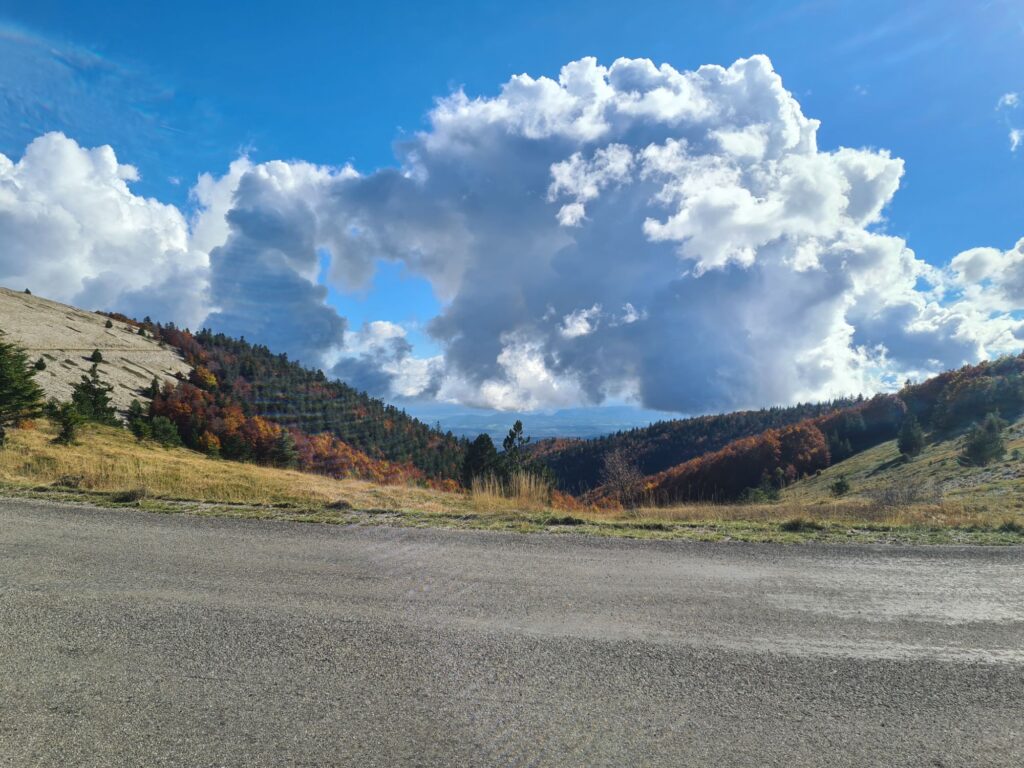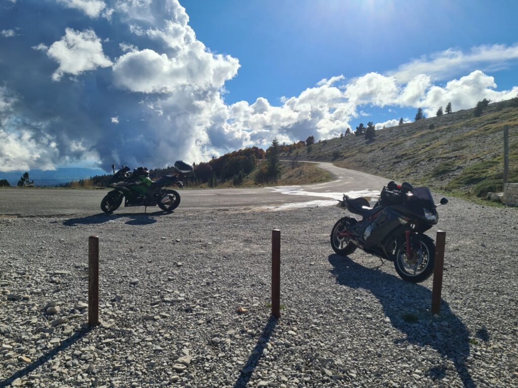 Pertuis – Carpentras on n’a pas fait le plus court 😁. De belles routes qui tournent (sauf le côté nord de la montagne de Lure : route mouillée et pleine de graviers et de feuilles bien glissantes, on a roulé mollo), je me suis régalé.