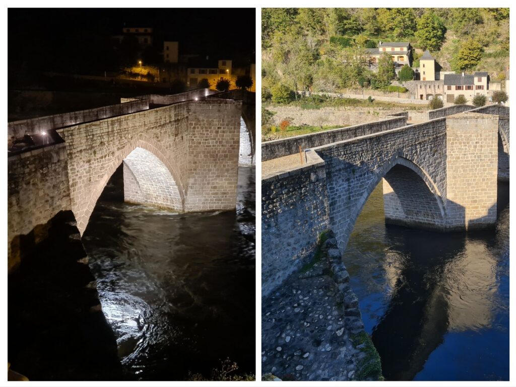 Ce matin au réveil, la vision du pont d’Entraygues est tout aussi belle que celle d’hier soir.