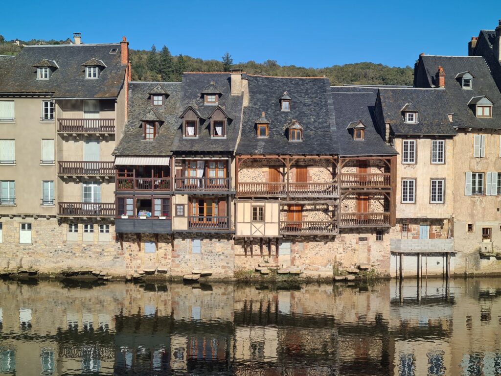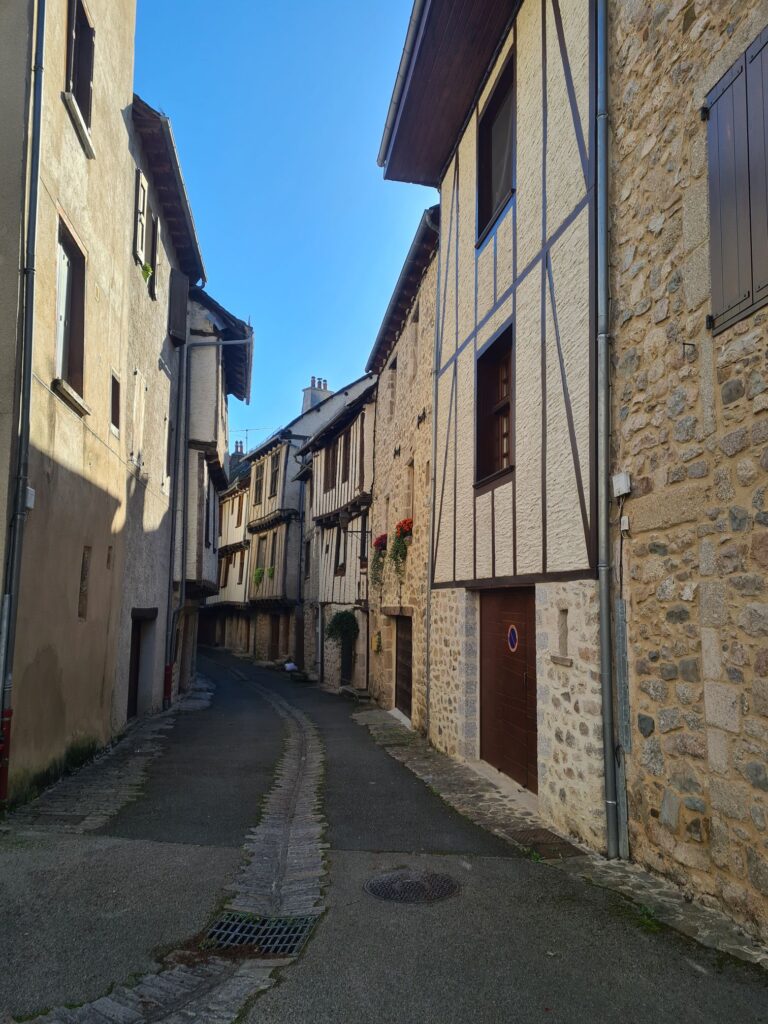 On fait à pied un petit tour du village avant de prendre la route. Ici le Lot et la Truyère se rejoignent et la ville s’est étendue autour de l’eau. Les maisons ont des colombages.