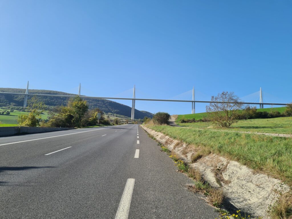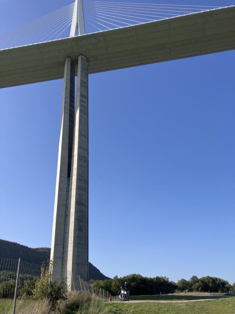 Lors de l’arrivée vers Millau, cette fois on se retrouve au pied du viaduc. Photo majestueuse obligatoire.