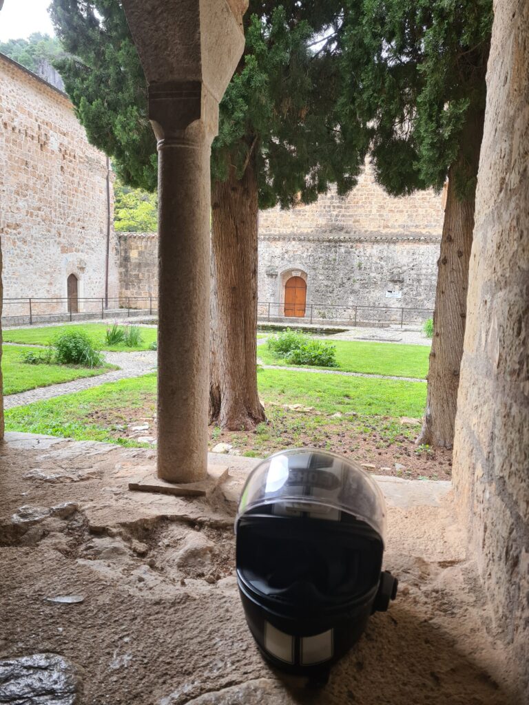 Un bon petit déjeuner et on remonte les bagages vers le parking. Puis on visite l’abbaye et son cloître avant de partir.