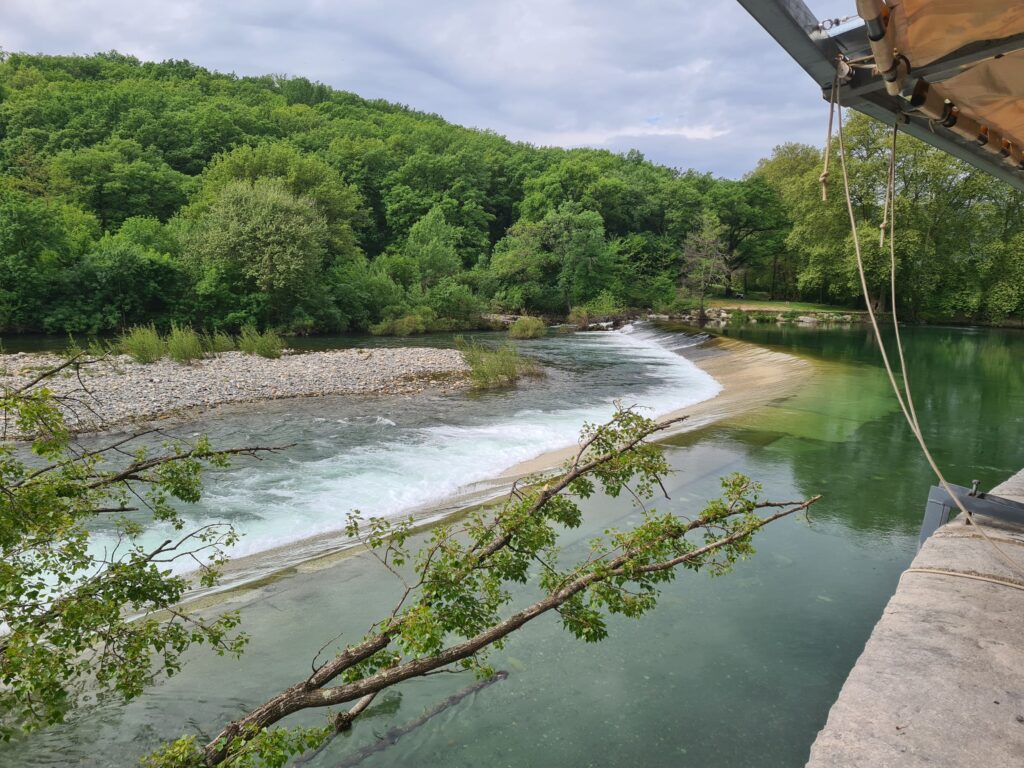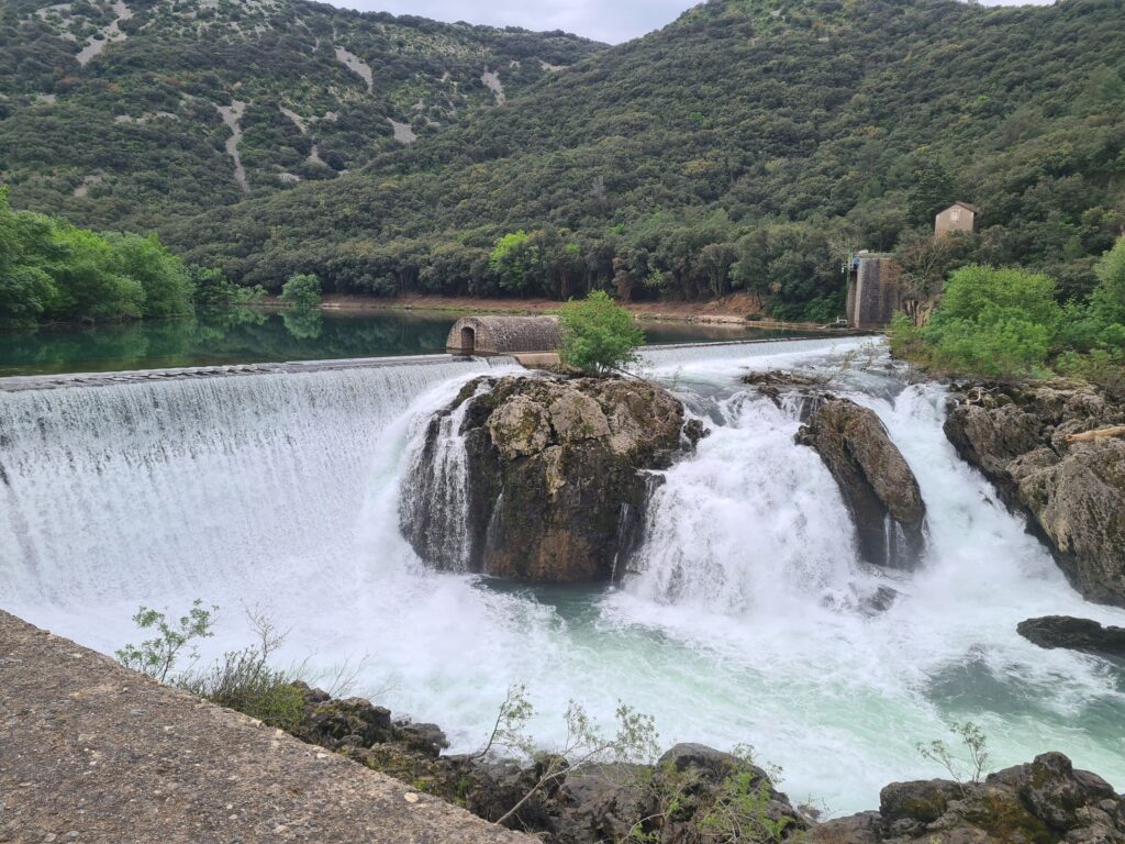 La route qui part de Saint-Guilhem-le-désert est un régal : bitume tout neuf, ça tourne dans tous les sens et on longe l’Hérault et ses cascades. Roule, petit bolide !
