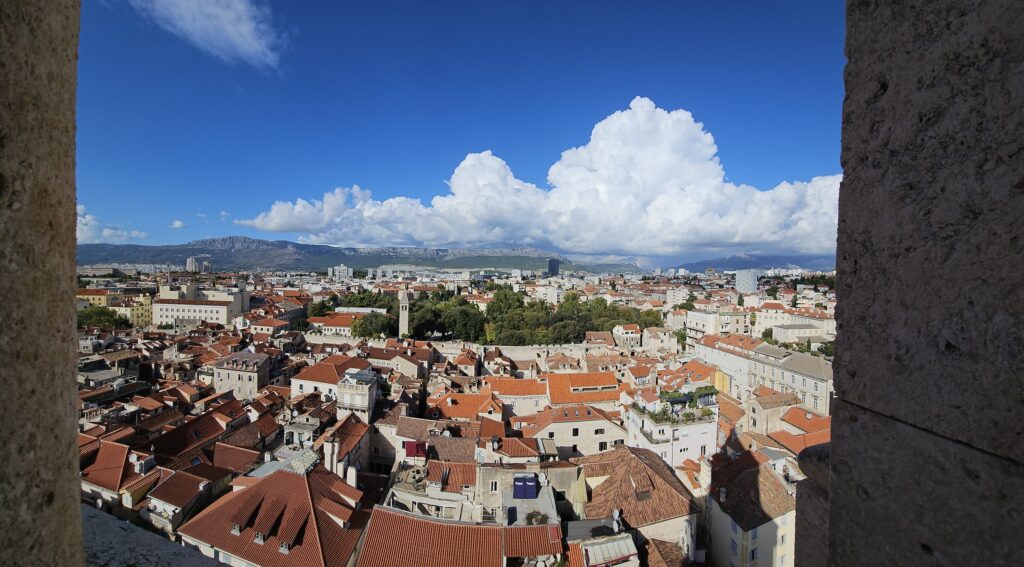Aujourd’hui visite du palais de Dioclétien dans tous les sens. C’est énorme : deux cents cinquante mètres de côté, de la pierre partout. C’est plein de ruelles étroites et, malgré les vacances terminées, plein de touristes.