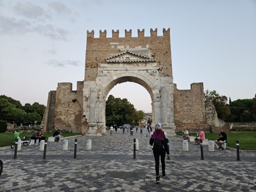 Le soir on visite Rimini, qui possède le plus vieil arc de triomphe romain du monde.