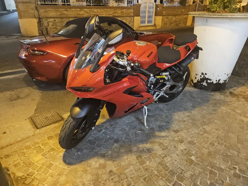 Une balade en ville après le repas. On croise une Panigale V2.